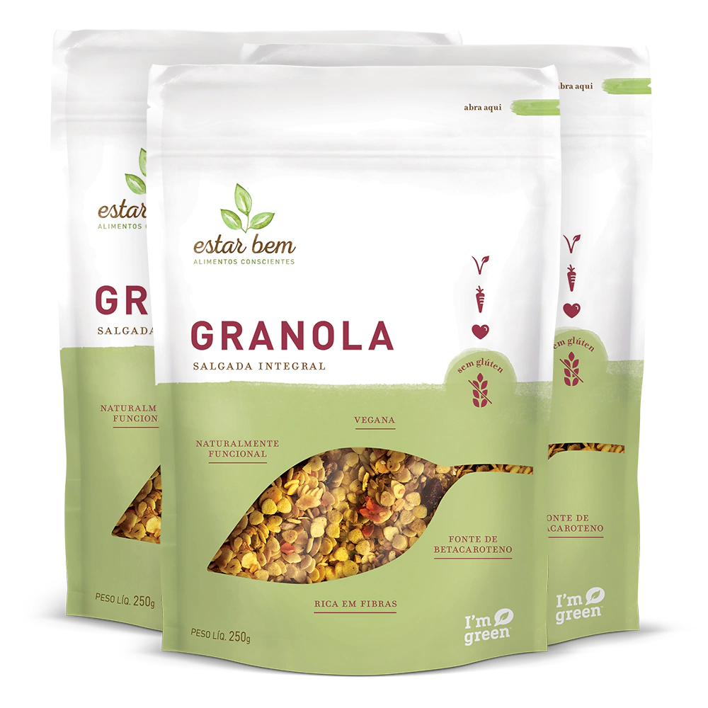 O kit contém 3 Granolas Salgadas de 250g cada.